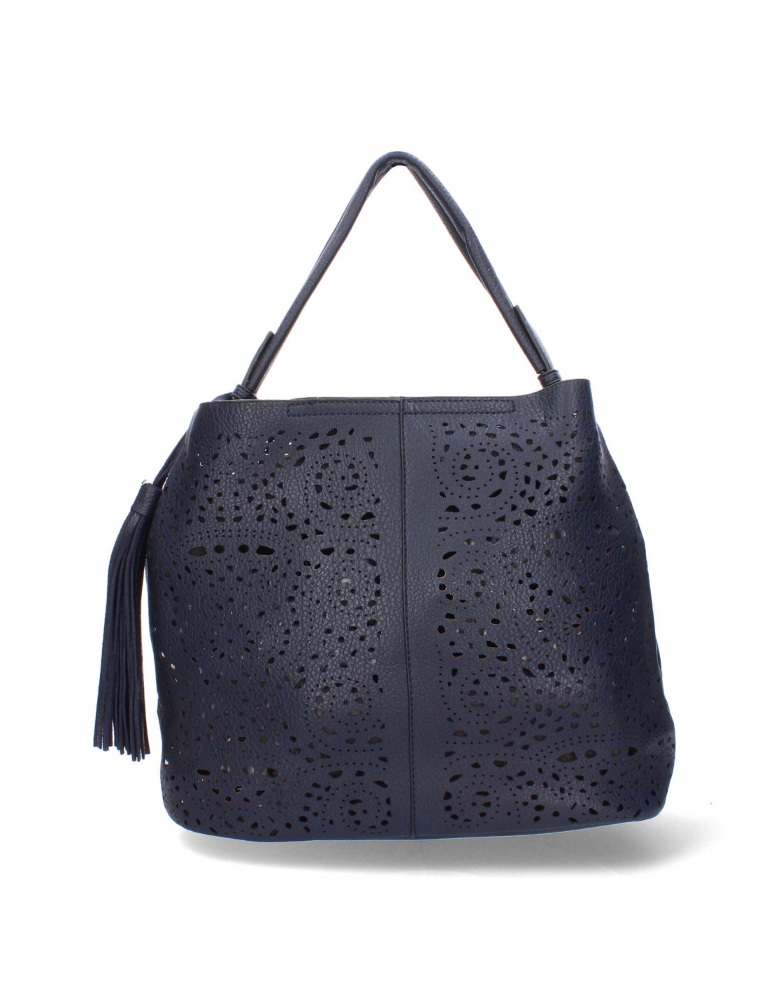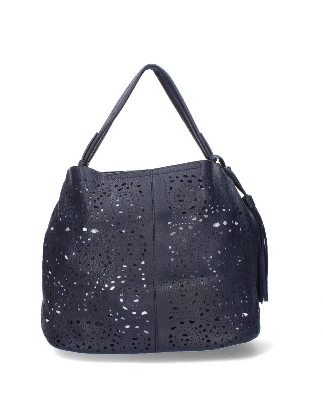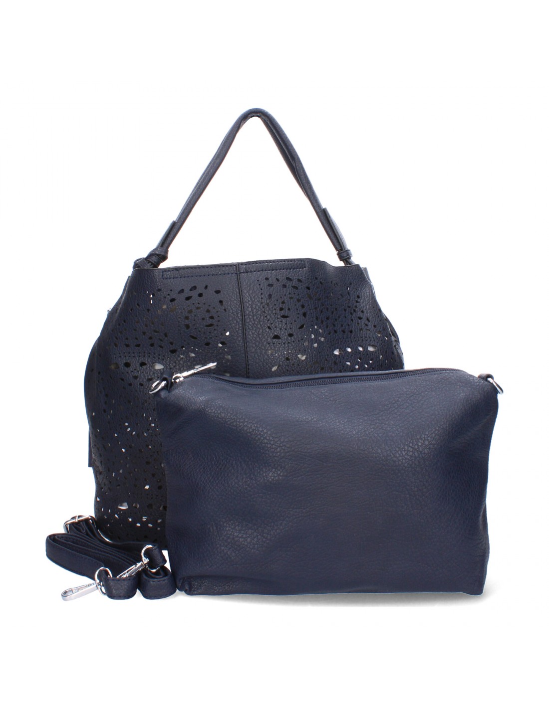 Bolso de hombro de Mujer con dos piezas, diseño calado, compartimento principal con cremallera con detalle en el lateral.