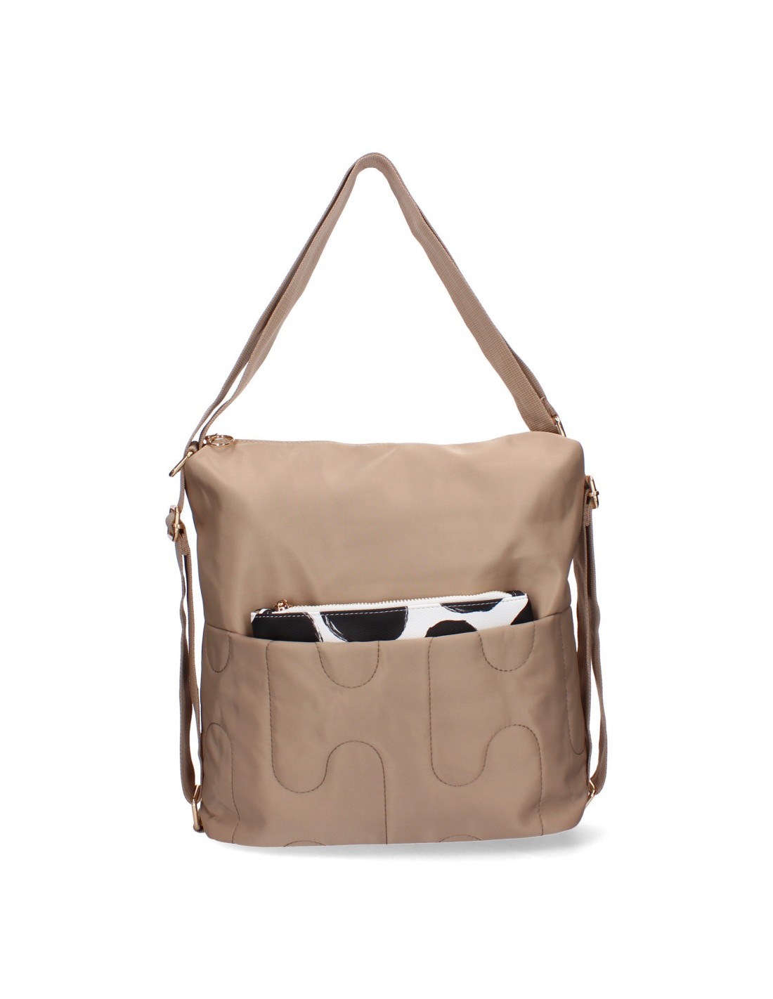 Bolso de hombro de Mujer con dos piezas con bolso de mano, compartimento principal con cremallera. En el interior cuenta con dos bolsillos abierto y otro con cremallera.
