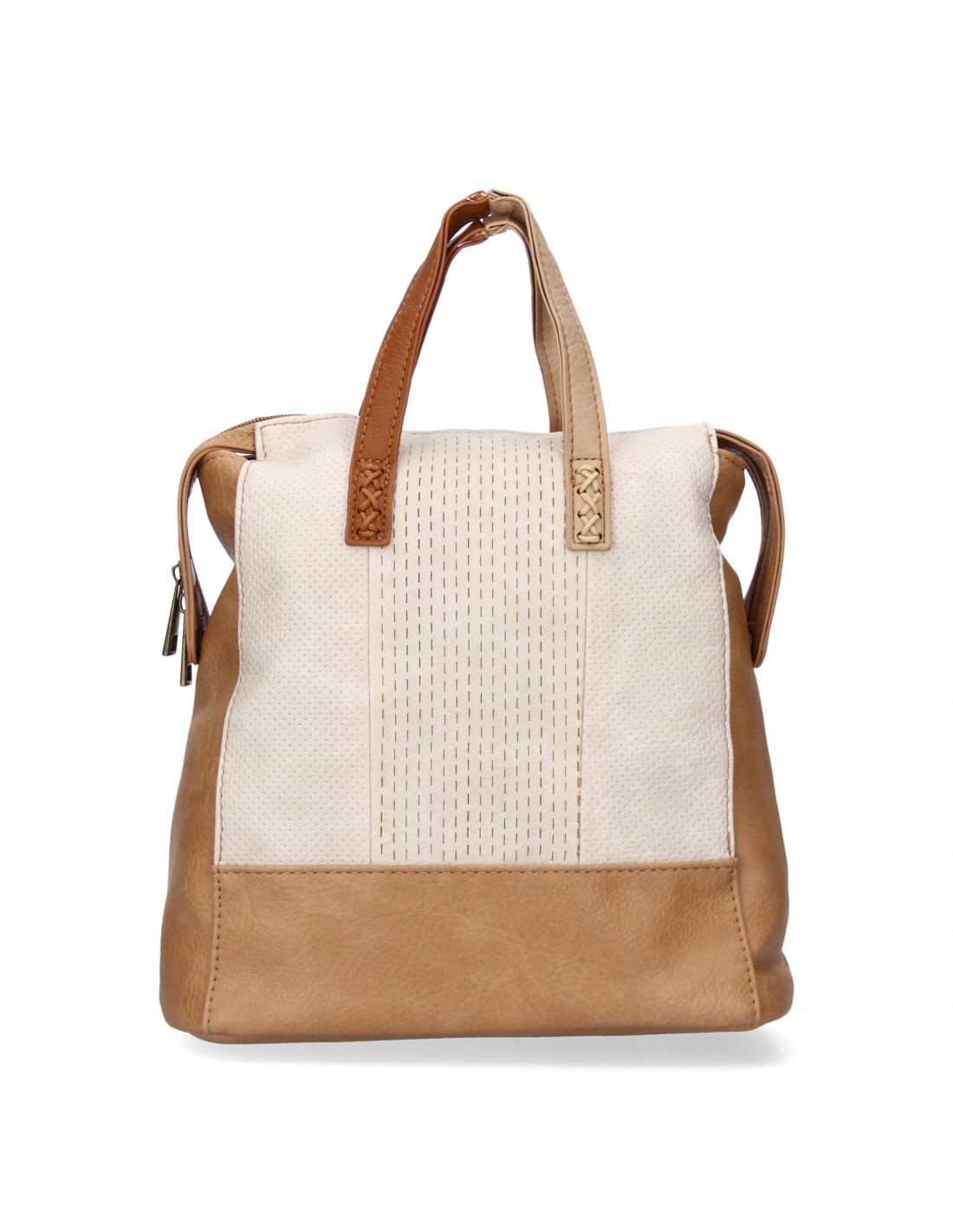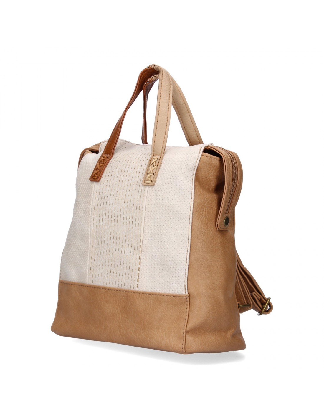 Mochila para mujer con correas ajustable, compartimento principal con cremallera y bolsillo en la parte trasera.