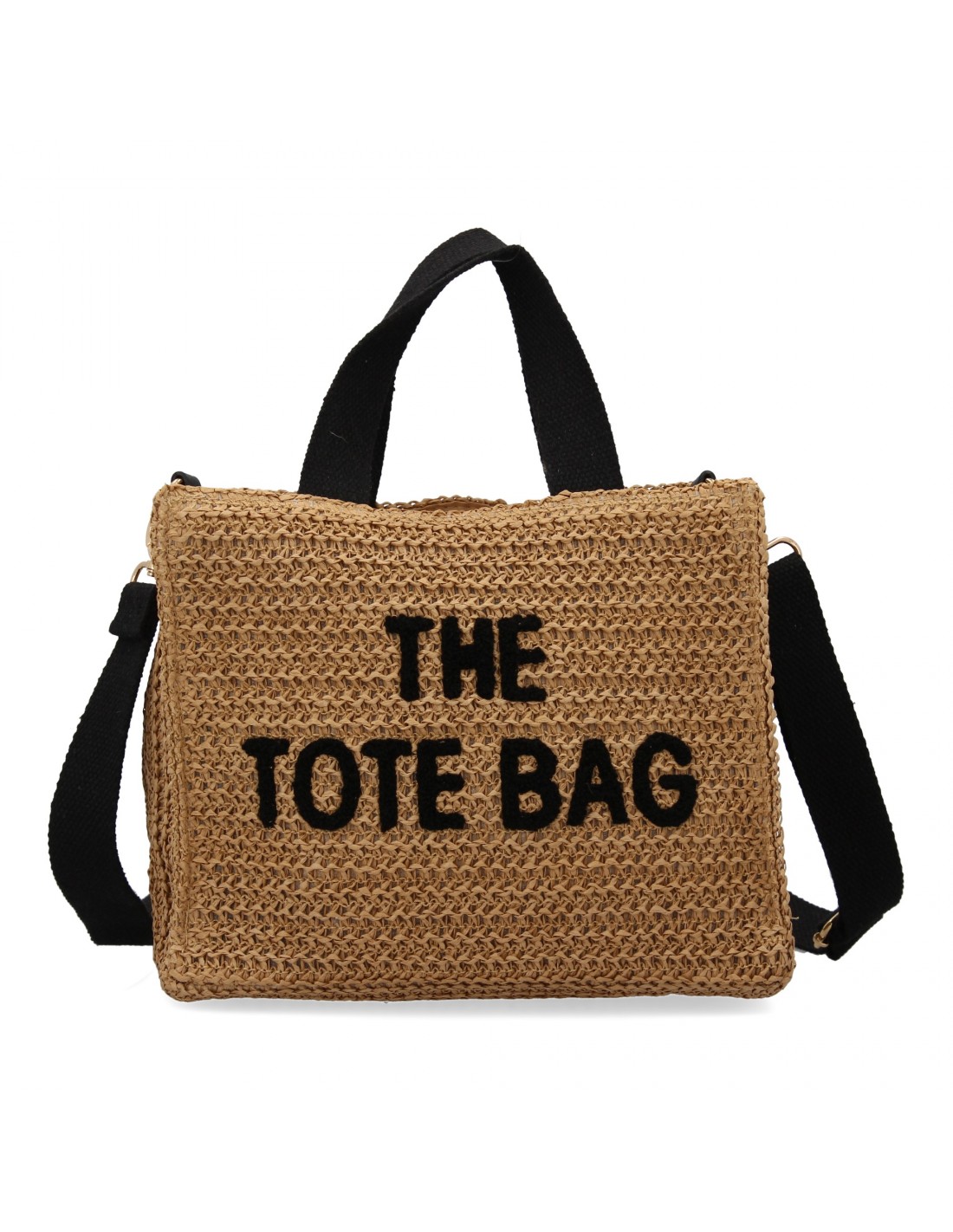 Bolso de hombro de rafia para mujer, diseño moderno, interior amplio con un compartimento principal
