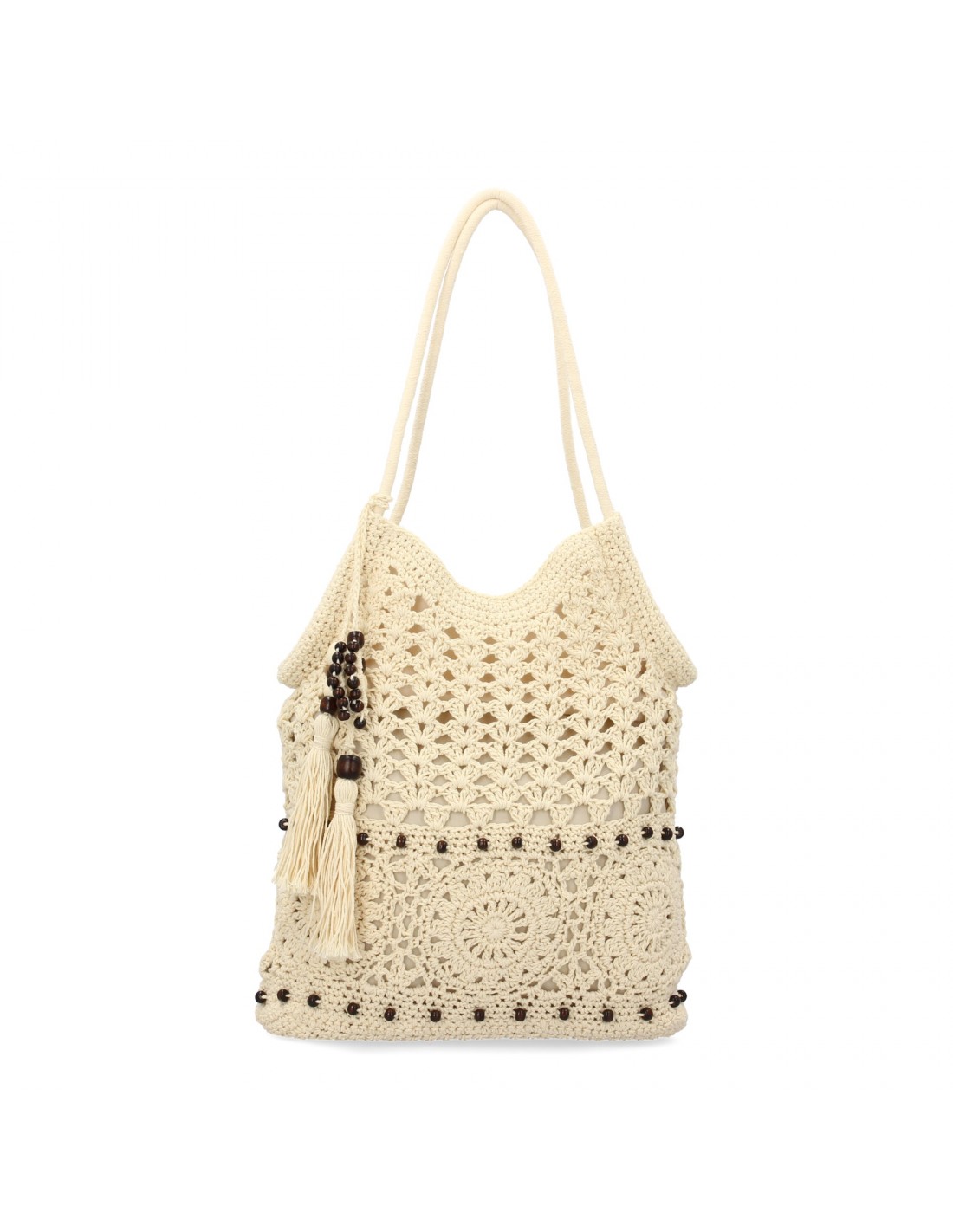 Inicio 8960-Kaki 8960-Kaki Bolso de hombro de rafia para mujer, diseño moderno con flecos, interior con un compartimento principal Ver