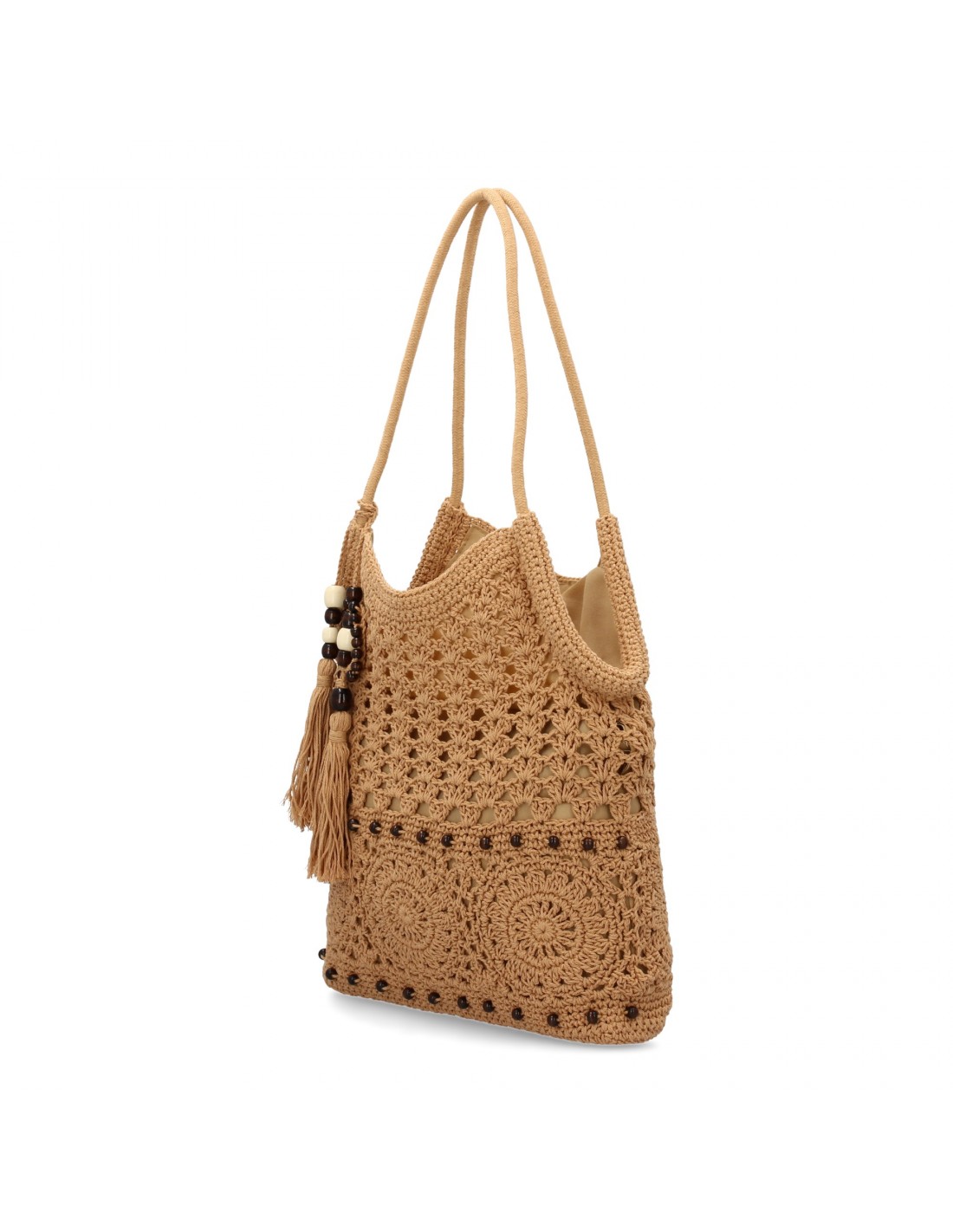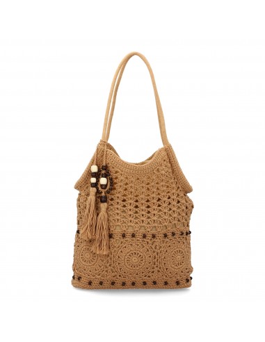 Bolso de hombro de rafia para mujer, diseño moderno con flecos, interior con un compartimento principal