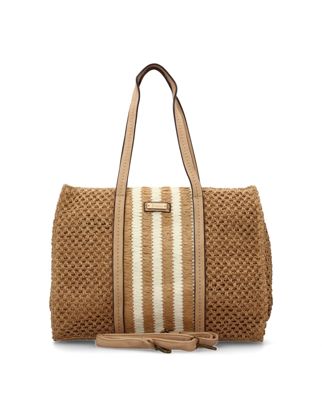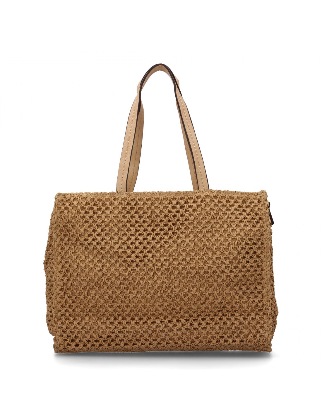 Bolso de hombro para mujer de rafia, diseño moderno con adornos, cómodo, en el interior compartimento principal de cremallera.