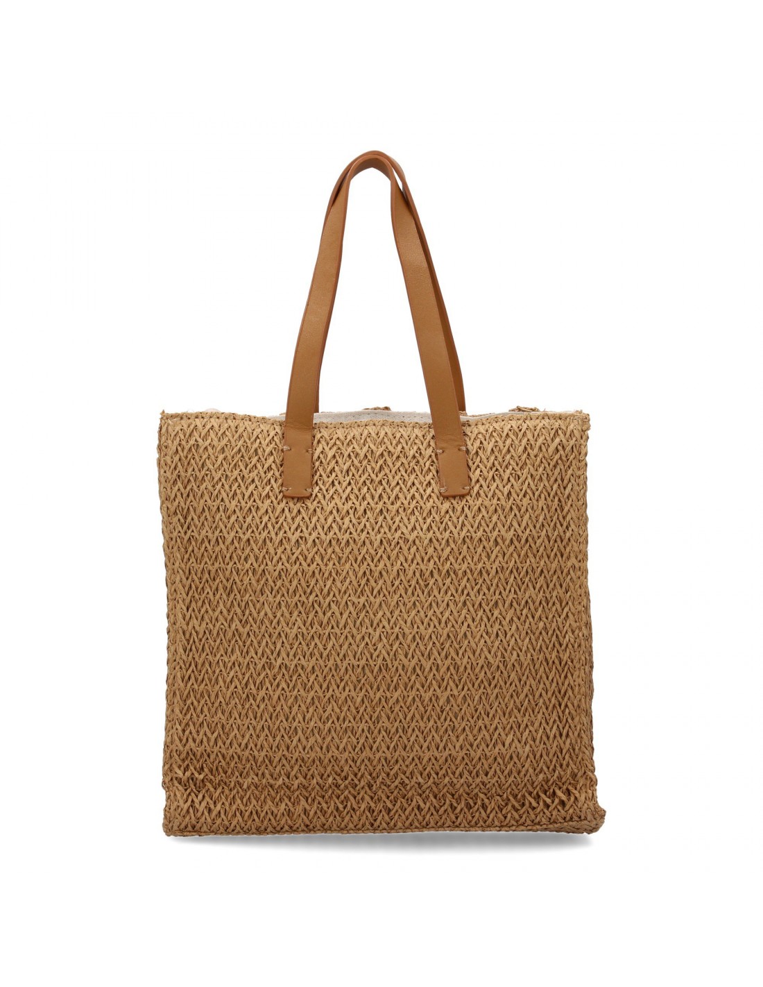 Bolso de hombro material de rafia para mujer, diseño moderno y cómodo en el interior compartimento principal de cremallera.