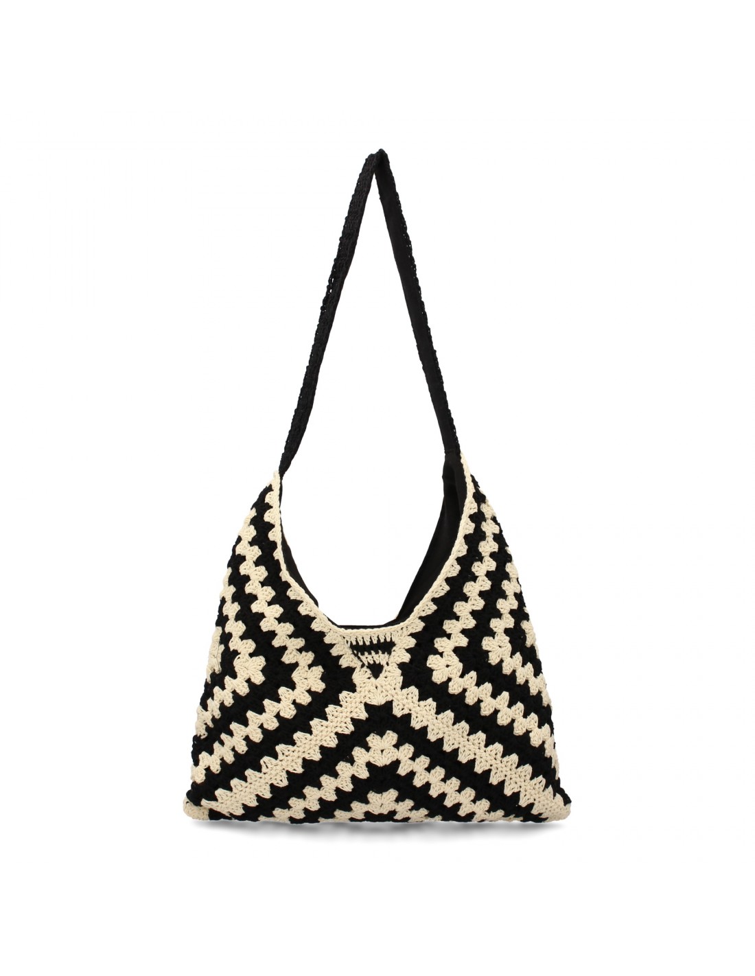 Bolso de hombro de mujer, diseño elegante y moderno con adorno en la parte delantera, compartimento principal con cremallera.